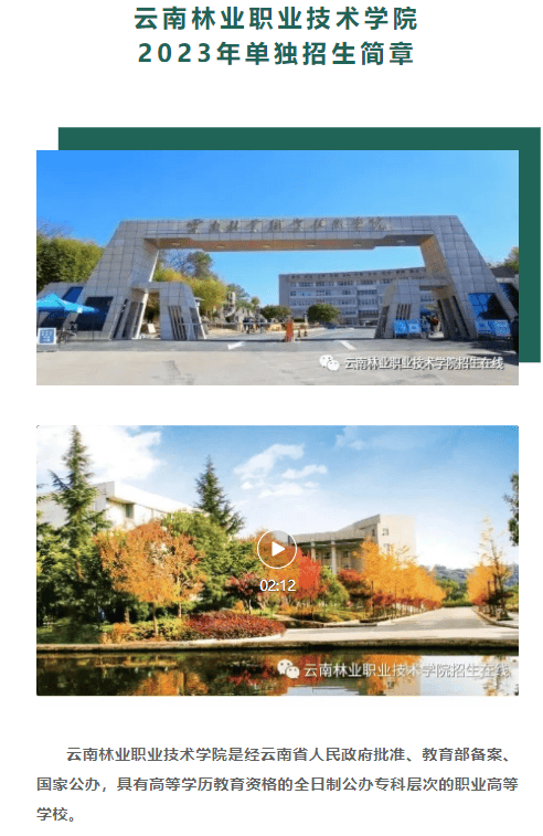 更多详情点击:云南林业职业技术学院2023年单独招生简章
